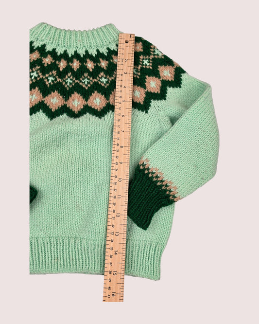 Handknit fair isle sweater green 3-5T