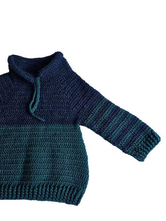 Navy and forest green cowl neck handknit sweater