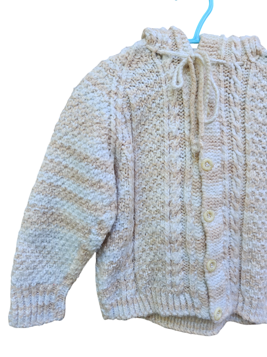 Handknit cream hooded cardigan Approx 2-3y