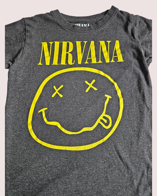 Nirvana dark heather grey tee Tagged 7/8 best fit 6-7Y