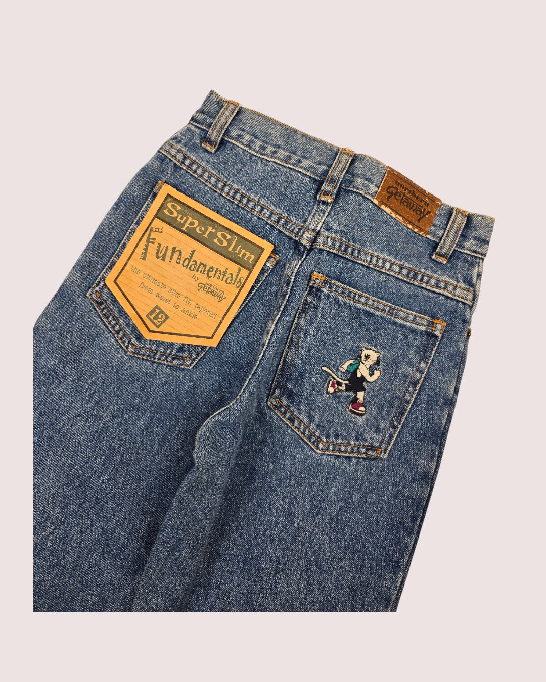 NWT Vintage Northern Getaway jeans with cat embroidered on rear pocket 10-12Y