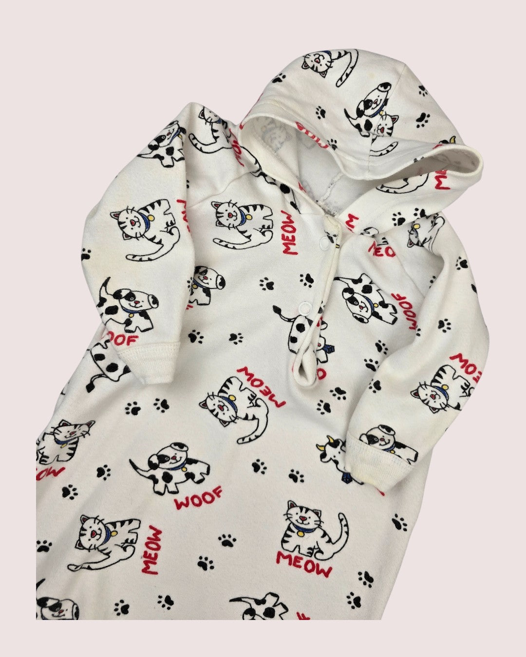 Vintage newborn sleeper cat and dog print